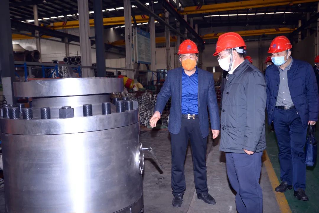 3月11日下午,金山區(qū)區(qū)委書記胡衛(wèi)國攜區(qū)委辦、區(qū)經(jīng)委、金山工業(yè)區(qū)管委會(huì)等領(lǐng)導(dǎo)一行蒞臨雙恒閥門集團(tuán)調(diào)研復(fù)工復(fù)產(chǎn)情況。在集團(tuán)董事長黃文意,副總經(jīng)理陳信陽、黃金標(biāo)等人的陪同下,胡書記一行先后深入走訪了公司入口防疫站、研發(fā)中心、理化中心、數(shù)控加工中心、大口徑閥門加工中心、超低溫深冷試驗(yàn)區(qū)、高溫閥門動(dòng)態(tài)實(shí)驗(yàn)臺(tái)等主要生產(chǎn)試驗(yàn)和研發(fā)區(qū)域,調(diào)研復(fù)工復(fù)產(chǎn)情況。